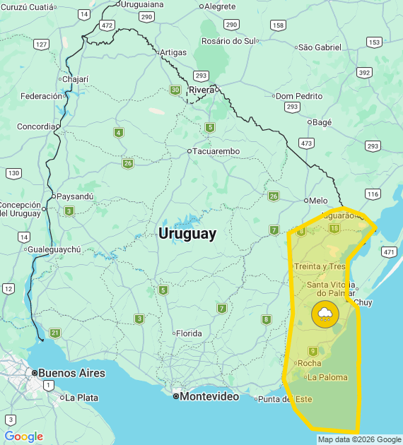 El Instituto Uruguayo de Meteorología (Inumet) emitió este jueves de mañana una advertencia amarilla por “persistencia de lluvias abundantes” para el centro y el este del país.